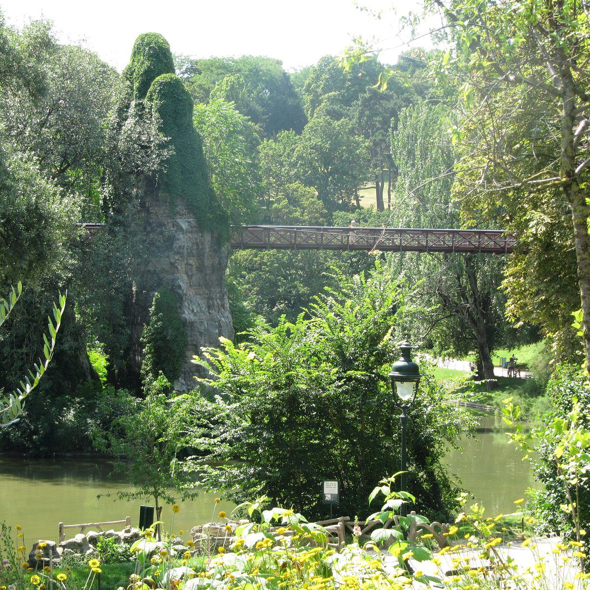 - Artificial Lake and Waterfalls: The park features a serene lake with an island connected by suspension bridges, as well as man-made waterfalls and a grotto, enhancing its romantic ambiance. Paris